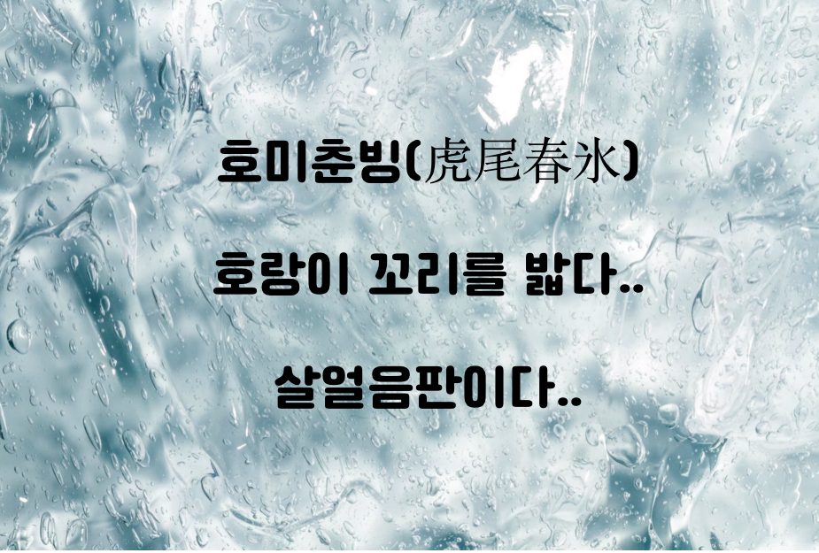 첫 번째로 한자성어 '호미춘빙(虎尾春氷)'입니다.